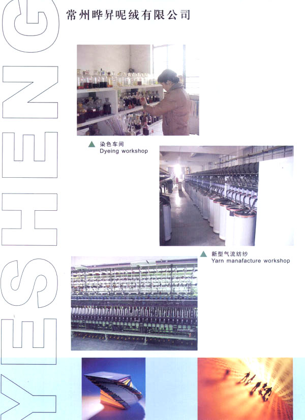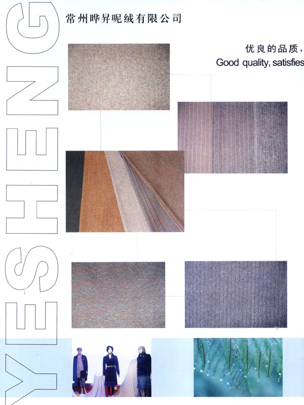 我廠成立于1999年,占地面積占60000平方米。固定資產(chǎn)有6000萬元。年銷售額達(dá)到1億元,全廠職工有600余人,技術(shù)員工超過80人,我廠主要經(jīng)營以粗毛紡為主的各式面料,以外銷為主,有一條完整的流水生產(chǎn)線,從原料一染色一紡紗一織造一后整理。我廠擁有12個(gè)染缸,日產(chǎn)量為6噸,精紡3600錠,粗紡8個(gè)臺套,劍桿織機(jī)60臺,后整理有全套精粗紡加工設(shè)備。主要產(chǎn)品有:羊絨,粗花呢,免羊毛,雙面呢,法蘭絨,精紡花呢,維羅呢,阿爾巴卡等,以及各類格子花呢。近年來本企業(yè)利用地區(qū)優(yōu)勢勢力開發(fā)新品,在原有的基礎(chǔ)上開發(fā)出各種備受親睞的花式呢料。如格子花呢,緞染花呢,粗毛絨呢,提花呢,并于2000年通過ISO9002認(rèn)證。本廠產(chǎn)品主要銷往歐洲,日本,韓國,法國,加拿大,美國,歡迎廣大客戶前來垂詢合作。本廠有志與世界的品牌建立良好的合作關(guān)系。