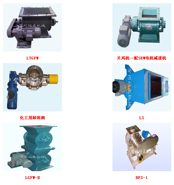 公司生產(chǎn)的關(guān)風(fēng)機(jī)、旋轉(zhuǎn)閥、星型裝卸料裝置、螺旋輸送機(jī),共有TGF、ZGF、ZGFW、ZGFWE、ZGFWF等十多種機(jī)型,五十多種規(guī)格,百余種參數(shù),制造材質(zhì)有鑄鐵、碳鋼、不銹鋼等,可滿足不同介質(zhì)、不同工況的要求。產(chǎn)品廣泛應(yīng)用于糧油、食品、飼料、化工、制藥、干燥、除塵等行業(yè)。