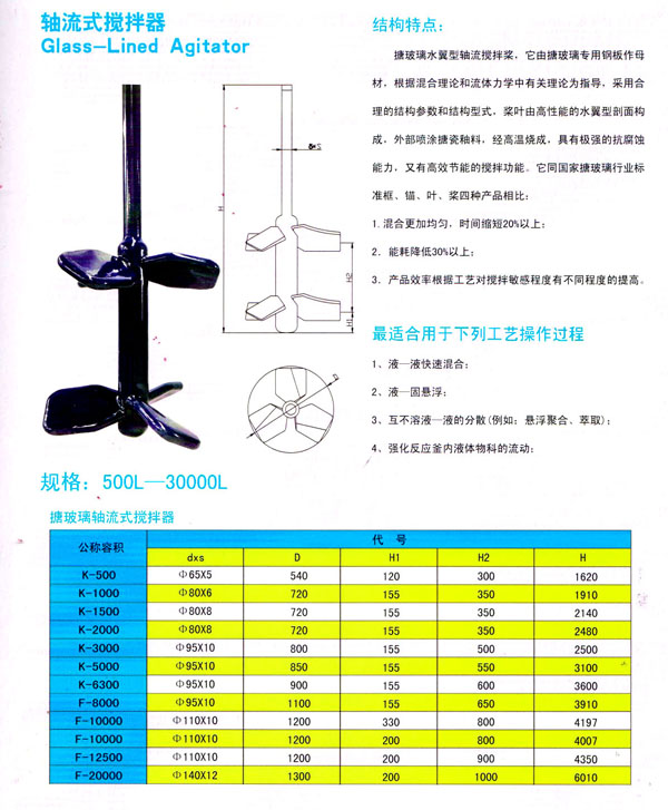 我廠系化工部定點生產(chǎn)搪玻璃設(shè)備企業(yè),主要產(chǎn)品有搪玻璃攪拌器,溫度計套管,W0.5型W1型W2型搪玻璃碟片式冷凝器,搪玻璃管道,塔節(jié),儲罐等等。本廠依靠技術(shù)力量的優(yōu)勢,采用國內(nèi)最先進的工藝,研制第三代多孔冷凝器,憑著三十多年積累的實踐經(jīng)驗和現(xiàn)代化科學(xué)工業(yè)設(shè)備,成為攪拌傳動裝置生產(chǎn)研發(fā)基地。并為用戶專業(yè)設(shè)計制造各類大型搪玻璃反應(yīng)釜及攪拌傳動裝置,各種搪玻璃非標(biāo)攪拌器,軸流式攪拌器,推進式攪拌器,不銹鋼攪拌器,各種形式的攪拌裝置。
