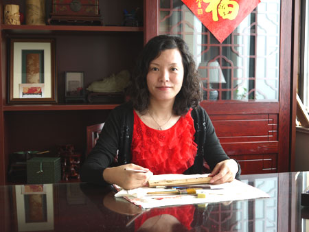 徐敏,一九七四年生于江蘇常州,擅長(zhǎng)山水油畫。師從竹刻家范遙青研習(xí)竹刻至今有二十余載。其作品受到竹刻權(quán)威鑒賞家王世襄認(rèn)可,并親筆為她題字褒獎(jiǎng)。現(xiàn)為常州市非物質(zhì)文化遺產(chǎn)傳承人。