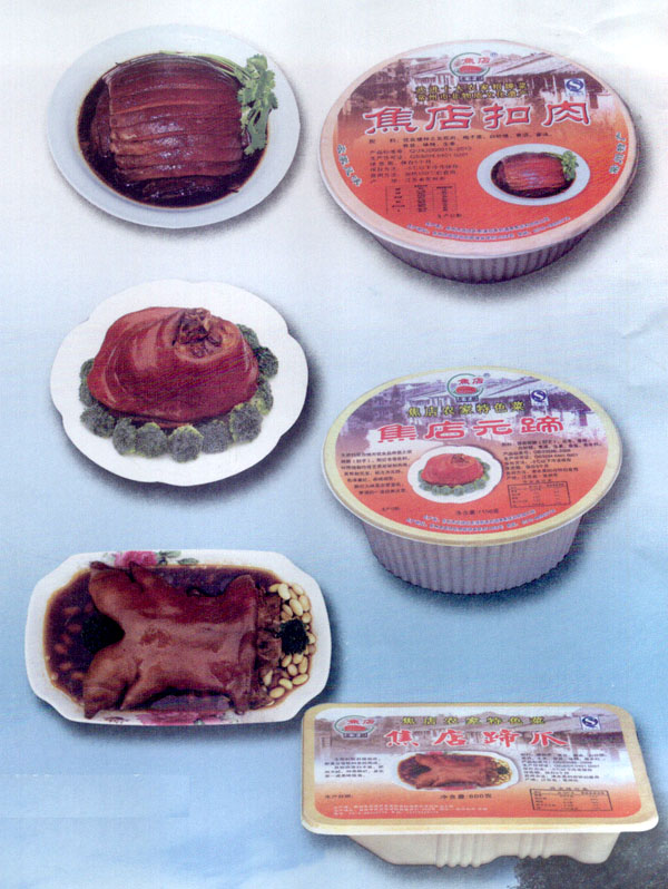 焦店扣肉: 色香昧形俱佳,現(xiàn)已成為江南地區(qū)的知名民間品牌。2006年5月被評為武進(jìn)十大農(nóng)家招牌菜,2008年9月列入武進(jìn)區(qū)級非物質(zhì)文化遺產(chǎn)保護(hù)名錄。2013年5月列入常州市級非物質(zhì)文化遺產(chǎn)保護(hù)名錄。 焦店元蹄: 主原料取自地方優(yōu)良品種豬之前蹄膀(肘子)。以傳統(tǒng)制作技藝蒸焐秘制而成。其形如元寶,稱之為元蹄。色澤醬紅,甜咸相宜,酥爛入味,是農(nóng)家喜慶、宴請的一道經(jīng)典大菜。 焦店蹄爪: 主原料取自豬前爪,其膠原蛋白豐富,肥而不膩,鮮香酥爛,是農(nóng)家一道養(yǎng)顏美昧佳肴。