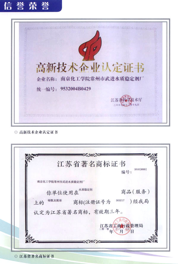 南京化工學(xué)院常州市武進(jìn)水質(zhì)穩(wěn)定劑廠是集科研、生產(chǎn)、經(jīng)貿(mào)、服務(wù)、教育于一體的聯(lián)合實(shí)體,創(chuàng)辦于1986年。 企業(yè)位于長(zhǎng)江金三角,緊靠滬寧鐵路和京杭大運(yùn)河畔,處于滬寧高速公路之間道口橫山橋鎮(zhèn),距民航常州機(jī)場(chǎng)僅半小時(shí)路程,交通便捷。企業(yè)占地面積15.7萬(wàn)平方米,擁有固定資產(chǎn)5000余萬(wàn)元,員工400余名,其中專業(yè)技術(shù)人員占員工總數(shù)的28%。專業(yè)生產(chǎn)“頌歌”牌系列水質(zhì)穩(wěn)定劑,綜合年產(chǎn)能力3萬(wàn)噸。 企業(yè)從1995年起先、后被列為國(guó)家中型二檔企業(yè),江蘇省明星企業(yè),江蘇省高新技術(shù)企業(yè),江蘇省環(huán)保產(chǎn)業(yè)百?gòu)?qiáng)企業(yè),化工部化工建設(shè)工程標(biāo)準(zhǔn)產(chǎn)品定點(diǎn)生產(chǎn)企業(yè),國(guó)家“精細(xì)化工星火技術(shù)密集區(qū)”重點(diǎn)骨干企業(yè),國(guó)家“貿(mào)工農(nóng)”出口商品生產(chǎn)基地。2003年起被評(píng)為國(guó)家環(huán)保產(chǎn)業(yè)骨干企業(yè)。2004年起“頌歌”商標(biāo)被評(píng)為江蘇省著名商標(biāo),“頌歌”牌水質(zhì)穩(wěn)定劑被評(píng)為江蘇省名牌產(chǎn)品。 企業(yè)運(yùn)用嚴(yán)密的科學(xué)管理,配有先進(jìn)的工藝技術(shù)和精良的生產(chǎn)裝備,保持高標(biāo)準(zhǔn)的產(chǎn)品質(zhì)量。所生產(chǎn)的水質(zhì)穩(wěn)定劑達(dá)到或超過(guò)國(guó)際先進(jìn)水平,擁有PBTCA等多個(gè)江蘇省高新技術(shù)產(chǎn)品,DPSC緩蝕阻垢劑被列為國(guó)家星火計(jì)劃項(xiàng)目,工業(yè)循環(huán)水用新型緩蝕阻垢殺菌劑被國(guó)務(wù)院評(píng)為國(guó)家科技進(jìn)步二等獎(jiǎng)。主要產(chǎn)品均通過(guò)部、省級(jí)科技成果鑒定,連續(xù)十多年被中國(guó)石化總公司評(píng)定為合格推薦產(chǎn)品。企業(yè)已通過(guò)IS09001、IS014001國(guó)際質(zhì)量、環(huán)境認(rèn)證,為國(guó)內(nèi)外石化行業(yè)、冶金、鋼鐵、化肥、電力、紡織等領(lǐng)域的工業(yè)循環(huán)冷卻水的水質(zhì)處理提供了必不可少的配套產(chǎn)品。 企業(yè)對(duì)外開(kāi)放,實(shí)行全方位合作。自九六年企業(yè)獲得自營(yíng)進(jìn)出口經(jīng)營(yíng)權(quán),水質(zhì)穩(wěn)定劑產(chǎn)品已銷往美國(guó)、英國(guó)、澳大利亞、日本和東南亞國(guó)家及香港、臺(tái)灣等地區(qū),并與之建立了穩(wěn)定的經(jīng)貿(mào)合作關(guān)系。