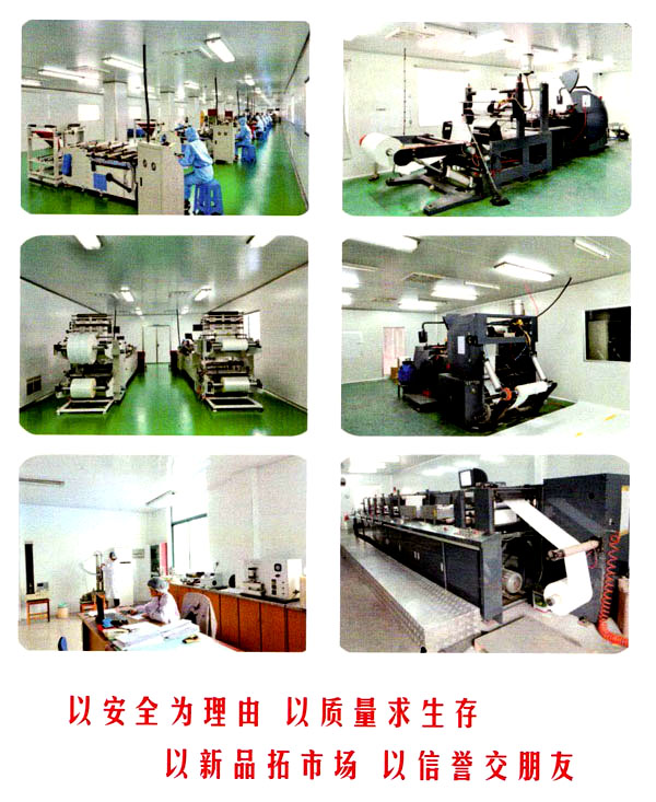 公司現(xiàn)在占地10000平方米,建筑面積6000平方米,擁有了10萬級潔凈車間700平方米。公司擁有先進(jìn)的大型涂膠生產(chǎn)線和電腦光控分切機和多功能電腦光控制袋流水線以及多臺適用印刷多類醫(yī)用透析紙的柔性版印刷機,能為客戶提供品質(zhì)卓越的產(chǎn)品(滅菌袋、消毒袋);完備而精密的檢測檢驗儀器和具有執(zhí)行資格的專業(yè)檢驗人員為公司的產(chǎn)品質(zhì)量符合國際標(biāo)準(zhǔn)和國家標(biāo)準(zhǔn)提供了強有力的保障。