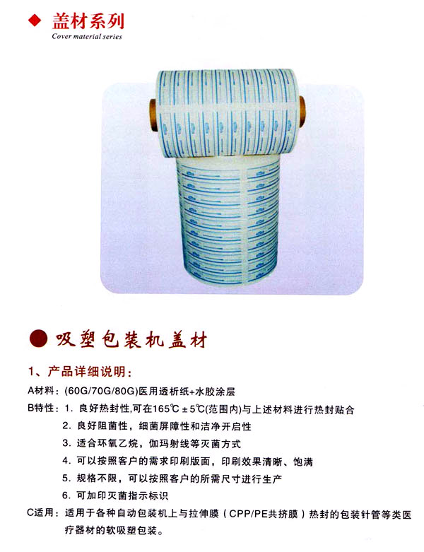 公司能根據(jù)客戶的要求分別生產(chǎn)出適合于環(huán)氧乙烷、輻照和等離子、蒸汽等不同的消毒,滅菌方式的各種規(guī)格的醫(yī)用包裝袋。該產(chǎn)品(滅菌袋、消毒袋)不僅具有良好的熱封效果和干凈完全的剝離效果,同時更具有單向的細(xì)菌阻隔性和透析性,從而保證了產(chǎn)品的滅菌效果和透析,l生能,贏得了廣大醫(yī)療器械生產(chǎn)生的一致認(rèn)可。
