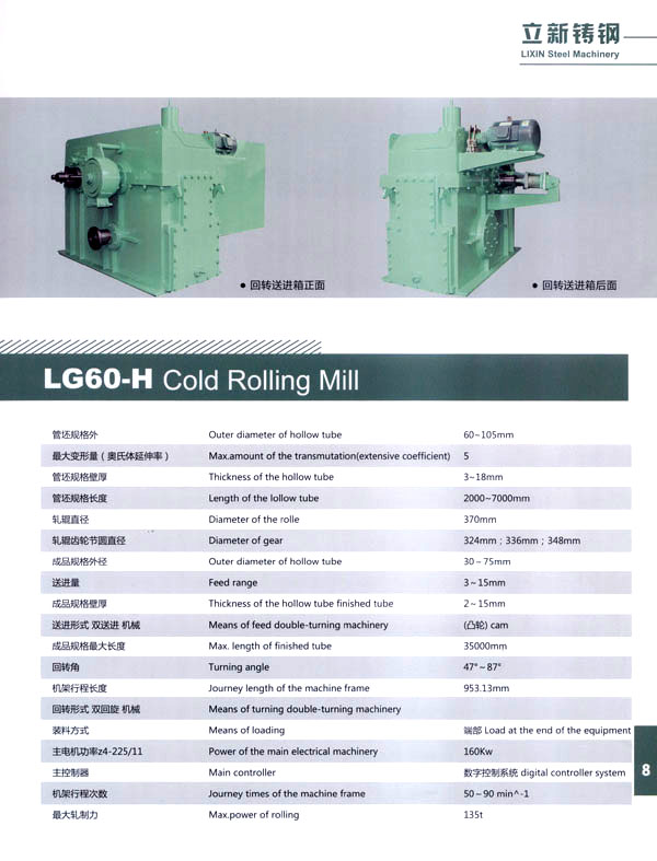 常州立新特種耐熱鑄鋼有限公司,地處江南水鄉(xiāng)古鎮(zhèn)一武進(jìn)橫林,是全國著名的強(qiáng)化地板之鄉(xiāng)。 本廠歷史悠久,技術(shù)力量雄厚,制造設(shè)備齊全。擁有先進(jìn)的鑄造生產(chǎn)線,1噸中頻感應(yīng)加熱熔煉電爐;先進(jìn)的化學(xué)分析設(shè)備和大型機(jī)床加工、埋弧堆焊機(jī)、電熱回火爐、拋丸機(jī)等。 公司依靠科學(xué)進(jìn)步,結(jié)合國外先進(jìn)技術(shù)和國內(nèi)需求,自行設(shè)計制造LGl5一H、LG20一H、LG30一H、LG40一H、LG50一H、LG60一H、LGl20一H型系列長行程環(huán)孔冷軋管機(jī)。對不銹鋼、碳鋼和有色金屬大減徑、大減壁軋制。亦可生產(chǎn)耐熱鑄鋼件、普通鑄鋼件、大型離心澆鑄件、大型軋輥堆焊等,同時可以為客戶加工生產(chǎn)大中型硬齒面齒輪及各類機(jī)械零部件備件。 公司另有焊管生產(chǎn)線1條,可生產(chǎn)直徑8—32mm的精密焊管、矩形管、冷拔管。應(yīng)用于各種燈具生產(chǎn)及其它工業(yè)生產(chǎn)。 本公司注重產(chǎn)品質(zhì)量,在同行業(yè)中率先通過了IS09000質(zhì)量體系認(rèn)證,并以優(yōu)良的服務(wù)取信于客戶。我們的宗旨是:質(zhì)量第一、信譽(yù)第一、價格合理、交貨及時,竭誠歡迎國內(nèi)外客戶來人來函聯(lián)系洽談業(yè)務(wù)、光臨指導(dǎo)!