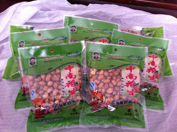 正宗的中南花生為綠色包裝,包裝上有“禮河中南”花生創(chuàng)始人蔣中南先生的頭像以及QS生產(chǎn)許可標(biāo)志,請廣大客戶認(rèn)準(zhǔn)購買,以防假冒。