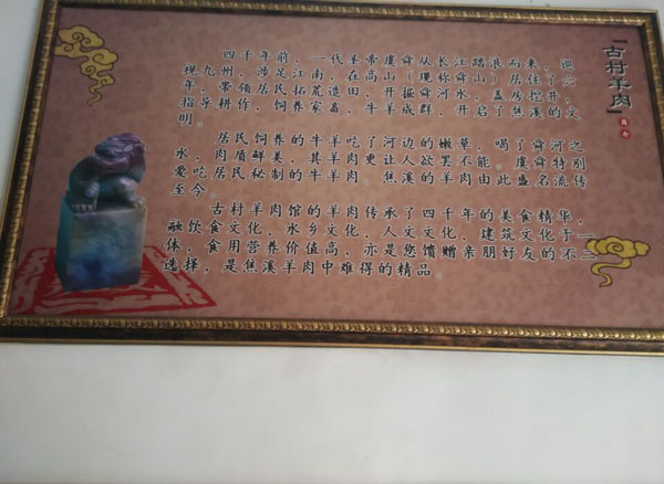 常州市武進鄭陸焦溪古村羊肉館選用放養(yǎng)的上等山羊,采用獨特的配方精心煮制而成,其特點:湯呈清色,肉質細膩,味道純正,不腥不膻,色香味俱全。絕對不含任何食品添加劑,是純綠色食品。特別在冬季,有滋補、祛寒、健身養(yǎng)胃之功效! 在傳統(tǒng)羊肉湯基礎上,力求肉鮮湯鮮的制作原則,用火、刀工、器皿等諸多方面加以改進。現宰活羊,以優(yōu)質的山羊為主,羊不超年半齡的捶羯蒙羊膻羯為標準。羊湯的主要技術就是羊肉湯的獨特配方,羊湯技術和羊湯的做法完全是兩碼事,羊湯技術是純正的羊湯的原始積累技術,也就是包括純正羊肉的配方,羊湯做法如放入羊骨頭、羊肉等,而天然居羊湯之所以出類拔萃,因其羊的湯呈清色狀,鮮潔爽口,不腥不膻,不粘不膩,獨具特色。用新鮮羊骨、羊肉、羊肚、羊頭、羊腸等羊下水,加以傳統(tǒng)香料配方熬制。由于湯呈清色,喝起來香而不膻,入口鮮潔爽口、熱燙濃香,營養(yǎng)豐富。