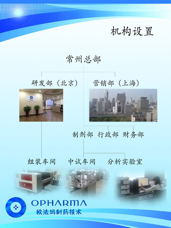 常州歐法瑪制藥技術(shù)有限公司位于長(zhǎng)江三角洲黃金腹地——常州。地理位置優(yōu)越、交通便捷,由鐵路、公路、水路、民航形成了一張立體交叉的交通網(wǎng)絡(luò)。 公司創(chuàng)建于2013年,是一家集研發(fā)、生產(chǎn)和銷售為一體,專業(yè)從事高速激光打孔機(jī)、滲透泵制劑研發(fā)、生產(chǎn)和銷售。目前公司擁有員工20人,科技研發(fā)和技術(shù)人員占員工總數(shù)80%以上,其中本科以上學(xué)歷占80%以上。 公司始建以來(lái),以前瞻的科學(xué)規(guī)劃,通過(guò)自主研發(fā),解決了高速激光打孔機(jī)諸多的世界難題,使之達(dá)到40片/秒以上且精確打孔的國(guó)際領(lǐng)先水平;同時(shí)開(kāi)發(fā)廢片自動(dòng)識(shí)別、剔除功能,以滿足客戶的實(shí)際所需。公司與瑞士等國(guó)家研究機(jī)構(gòu)的科技合作,以高速激光打孔機(jī)為基礎(chǔ),建設(shè)了滲透泵制劑研發(fā)和中試生產(chǎn)車間,開(kāi)發(fā)了多種藥物的滲透泵制劑,形成了從關(guān)鍵設(shè)備研制,新制劑開(kāi)發(fā)、工藝配套,到批量生產(chǎn)測(cè)試的滲透泵制劑開(kāi)發(fā)全過(guò)程技術(shù)團(tuán)隊(duì)和研究設(shè)施。公司瞄準(zhǔn)現(xiàn)代新型釋藥系統(tǒng),吸收國(guó)內(nèi)外高端人才,努力開(kāi)拓控緩釋技術(shù)、靶向給藥技術(shù)及智能給藥技術(shù)。 2013年公司被評(píng)為黑馬大賽“創(chuàng)業(yè)組50強(qiáng)”、“領(lǐng)軍人才創(chuàng)業(yè)重點(diǎn)企業(yè)”;2014公司通過(guò)了IS09001-2008質(zhì)量管理體系認(rèn)證、CE認(rèn)證、江蘇省質(zhì)量信得過(guò)企業(yè)。