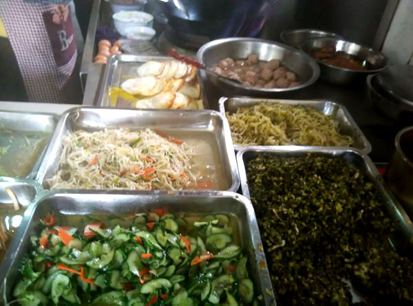 魁元面館,橫山橋江南路,沿街的店鋪。老板娘徐文霞,從公婆手里接過這個店面已有20多年。最具特色的菜品是肉圓跟大排。每天凌晨3點就要起來做準備,菜都是現(xiàn)燒現(xiàn)賣。 特色小菜: 肉圓:有人特意遠道而來打包走 大排面:每天能賣出100來塊大排 大腸 雞蛋:每天煎的雞蛋就差不多300來個 小餛飩、大餛飩 限時供應: 咸鴨蛋、肉粽、蛋黃粽:每天都要包,放爐子燒,在端午前后供應,很好吃。每天都有人打包幾個咸鴨蛋或者粽子拿回家,送人 油酥餅(圖3-4)、糍團餅(圖5-6)、韭菜餅(圖7-8) 油酥餅每天晚上做,涼了更好吃,更酥更脆,里面都是很香的黑芝麻;糍團餅,每天中午擺攤熱了煎鍋開始煎,糯米做成,用菜籽油煎至金黃,餡兒是黑芝麻瓜子仁;韭菜餅是最受歡迎的,每天都有好多人排隊來買。供應時間:每年的4月份到11月份 下午1點到5點半。