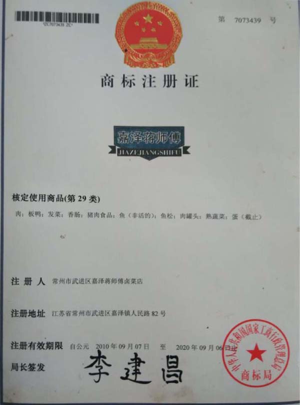 常州市武進區(qū)嘉澤蔣師傅鹵菜店經(jīng)營已有30多年,本產(chǎn)品采用祖?zhèn)髑旯欧郊右钥茖W(xué)營養(yǎng)的獨特鹵料配方、加入30多種名貴香料和中藥材秘制而成,達到色、香、味、形的俱加效果。做出來的產(chǎn)品不僅口感鮮美、香盈撲鼻、而且色澤誘人!肉感細膩、韌勁適度、有嚼勁、香辣入骨、不加塞牙縫,食用后具有特別的回味宇香,是極好的送禮佳品。