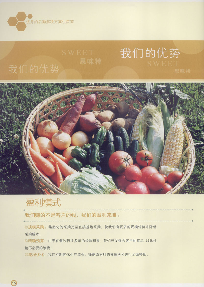 常州市思味特餐飲有限公司是一家專業(yè)從事企事業(yè)后勤服務的有限責任公司,公司從承包食堂起步,逐漸發(fā)展為經(jīng)營團膳承包、營養(yǎng)送餐、生活區(qū)管理、連鎖餐廳的綜合型企業(yè)。2008年公司斥資100萬元,在常州興建了可以同時提供3000餐膳食的中央廚房,重點打造“和美客”后勤服務品牌,全力為企事業(yè)單位解決后勤后顧之憂。