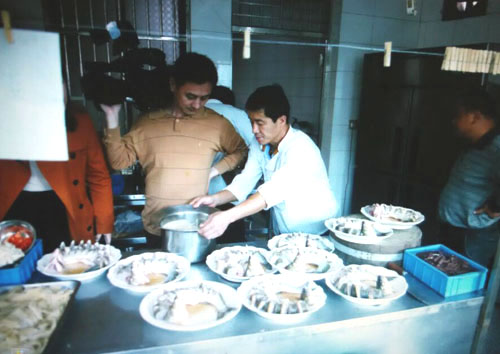 張萬成羊莊一家綜合性的公司,下設酒店,羊產品加工廠,屠宰廠,山羊養(yǎng)殖場。 酒店位于常州西夏墅浦河村,酒店羊宴規(guī)模占地30畝,酒店主要經營特色全羊宴。 一個祖?zhèn)鞯臍⒀虼髴簦瑐鞯綇埲f成,已是第六代了。張家的羊肉,素來以肉質鮮美著稱,張萬成羊莊的主人張建龍是第六代傳人,張家的羊肉素來以肉質鮮美著稱,從常州新北區(qū)沿黃河西路往機場方向直行至羅溪右轉,穿過滬寧高速高架橋后不遠處左拐沿翠屏湖路直走便能看到張萬成羊莊,酒店上下共有三層,2000多平方米經營面積,能同時接待近30桌客人的規(guī)模。有自己的羊圈和屠宰場,每天殺20多只,菜式近100道。光是原料,就從原來羊身上的幾個主要部位,增加到除了羊牙齒以外的一只整羊全部可以入菜。烹制方式,更是在本土單一的燒、炒、煮基礎上,借鑒了東北、廣東、四川等地的烹羊特色,增加了蒸、涮、烤、煎、炸等多種方式。 注重原汁原味的冷菜 白切羊肉:精選羊頸部的活肉精制而成,肥瘦適中,絲毫沒有一般羊肉的膻味,沾少許張萬成羊莊秘制的醬料,口感非常好。 美味羊舌:張家的羊舌感覺是用特殊的醬料腌制過的,咸中略有甜味,口感鮮嫩卻肥而不膩,味道很香。 除了白切羊肉和羊舌以外還有許多冷菜品種,如羊肚、羊心、羊耳朵等。。 火候控制精準的炒菜 炒羊肝:地道的農家風味,與大蒜葉同炒,蒜香濃郁,羊肝鮮嫩,這羊肝可是火候菜,羊肝鮮嫩與否不但取決于廚師對火候的掌握,還在于上桌放置時間的長短,所以羊肝上桌后要盡快食用,看羊肝是否鮮嫩,只需用筷子挑起并輕輕抖動,有彈性者為佳。 美味羊寶:以韭黃、鮑味菇爆炒的羊寶,說是滋補壯陽的一道金貴菜,配料講究的燒菜系列 宮廷燴羊肚:較為金貴的菜品,配菜貴于主料,是以名貴的素鮑和新鮮的筍絲與羊肚同煮,口感濃郁,營養(yǎng)豐富。 海參白燒羊肉:將取自7個月大羔羊身上的帶皮腿肉與海參一同煨煮,菜肴美容滋補,兩種鮮味互相補益達到完美交融狀態(tài),口感甚佳。 魚羊鮮:新鮮的青魚配上羊肉,既有本地羊肉的肥嫩,又有魚肉的鮮香,鮮!鮮!古代人造字就是有道理!”店里可以根據(jù)客人的需要配以魚回魚、鯰魚、鱖魚等。 特色的羊宴點心 羊肉餛飩:羊莊老板自創(chuàng)的羊宴點心,看似普通的油燜跑蛋卻另有乾坤,將蛋掀開便能看見藏于其中的羊肉菜餡餛飩,菜和肉都是自家新鮮的原料,很好吃。 手工搟面:不知道是因為面是真正用手工搟制還是因為加入了鮮味十足的羊湯,總之味道非常好,面勁道,湯也鮮美! 張萬成羊莊的羊湯也是遠近聞名,因為是祖?zhèn)鞯氖炙,做出來的羊湯不腥不膻,香醇不膩,味道十分鮮美,加入粉絲或者面條更是難得的美味。