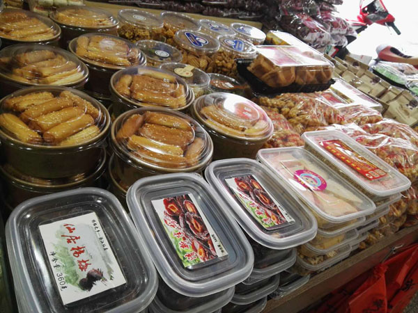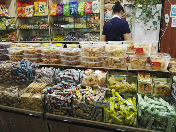 湖塘花東街上的“石頭炒貨店”是20多年的老字號了。上個世紀(jì)90年代,二十郎當(dāng)歲的“石頭”一一石愛軍從徐州來到武進,就在這條街上擺了個炒貨攤!皫灼椒矫椎男〉財,邊上架個大鐵鍋,炒出的瓜子、花生、蠶豆,鋪在竹篾上篩過、冷卻后就可以賣了。”石愛軍回憶,街坊鄰里冒著冬日的嚴(yán)寒,擠在地攤前嘗著剛出鍋的瓜子的場景,還歷歷在目。20多年過去了,鄰居們都成了最熟悉的親人,從年輕姑娘到抱著孫子的老人,大家還是最愛吃石頭炒的瓜子。而炒貨店的店面也擴大了,并且在湖塘另開了多家分店。 生意最好的還是花東街上的老店。不大的店面,被一袋袋瓜子、花生、蠶豆、核桃堆得滿滿的,空氣里也滿滿都是堅果的香氣。超大瓜子唇齒留香,去皮瓜子鮮香入昧,南瓜子皮薄肉厚,還有開心果、手剝松子、小油果、核桃、碧根果、小黃豆,以及炒米糕、蛋卷、麻松條、紫薯干、地瓜干、山芋片、鍋巴、芝麻糖、山楂、麻花、葡萄干….這么多美昧都是老板親手制作。愛吃點什么,就用一 長柄勺鏟點兒什么,最質(zhì)樸簡單的包裝袋里,裝著的是屬于這條老街居民記憶里的味道,穿過幾十年的時光,仍然鮮活生動地銘刻在每一個人的里。 “少東家”石榮沖就是在這個老店、這條老街長大的。他說目前自己炒瓜子的技藝還沒到火候,還在跟著父親學(xué)習(xí)的階段!碧暨x原料、炒制工序,每一步都有學(xué)問在里頭!蹦玫陜(nèi)的銷售冠軍“內(nèi)蒙大瓜子”來說,這種來自內(nèi)蒙、經(jīng)過充足日照的葵花子每顆長度近2厘米,個頭特別大,也十分飽滿。拈一顆大瓜子,就連嗑起來的聲音也分外清脆。外皮很容易與內(nèi)仁剝離,碩大的瓜子仁口感十分香脆,與別家作料用得很足、吃起來特別鮮咸的瓜子不同,這種大瓜子更注重烘托原昧,淡淡的咸昧在舌尖掠過,剩余的都是屬于瓜子的天然香甜。