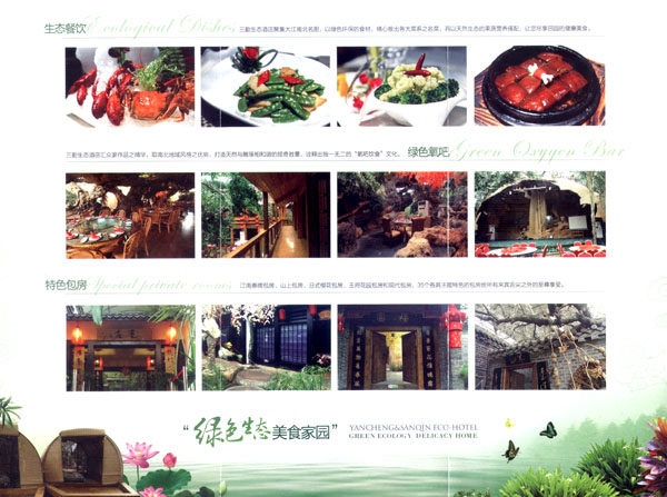 淹城花都溫泉水城孕育天地之精華,悅身、悅?cè)、悅心、悅神。置身其中泉水潺潺,霧氣繚繞、花瓣飄香,恍若仙境!稗渌略谑,弄花香滿衣”,花都溫泉的浪漫與溫潤在這里完美展現(xiàn)。 花都溫泉水城包括洗浴區(qū)、戲水世界、露天溫泉、自助餐廳、生態(tài)房、別墅區(qū)、紅文化房、VIP區(qū)等多種功能區(qū)域,是集溫泉養(yǎng)生、休閑住宿、演藝會務(wù)為—體的休閑度假勝地,給賓客帶來江南小鎮(zhèn)的浪漫水城之旅。 古木新枝畔賓客對酒當(dāng)歌,溪泉石椅旁把茶品啜。 淹城-三勤生態(tài)酒店,這里是一處綠色生態(tài)的美食家園。此地鬼斧神工.奇水異石,和風(fēng)細(xì)雨林中穿過,引百鳥朝來暮歌;這里集生態(tài)餐飲、演藝、中小型會務(wù)為一體,將現(xiàn)代裝飾風(fēng)格和古雅拙樸的自然裝修完美整合;這里聚集大江南北名廚,推出精致綠色美昧佳肴。來到這里,賓客可享田園至美之景,品舌尖至鮮之味,實(shí)乃人生一大樂事。